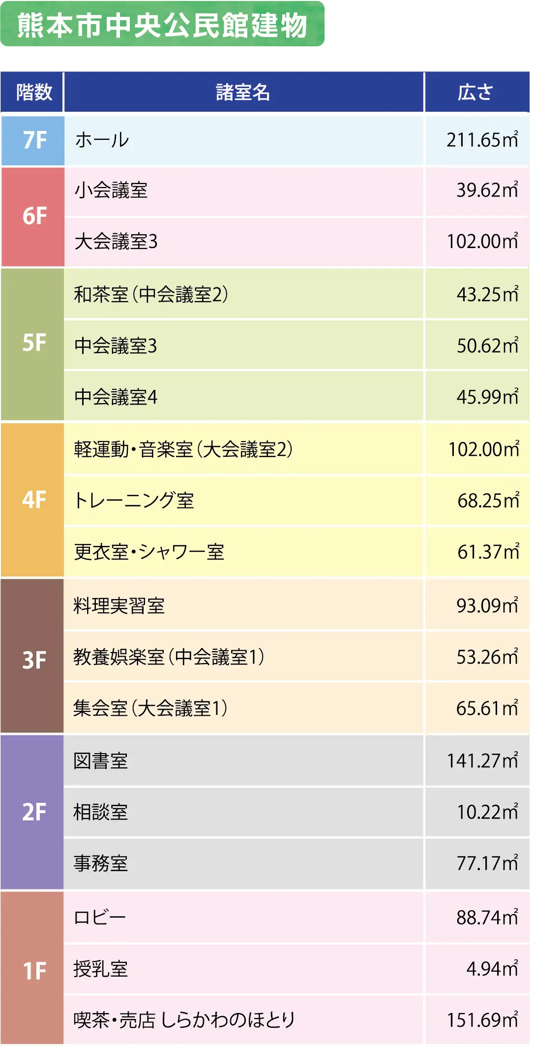 熊本市中央公民館施設利用料金・定員一覧(PDF)公民館だより